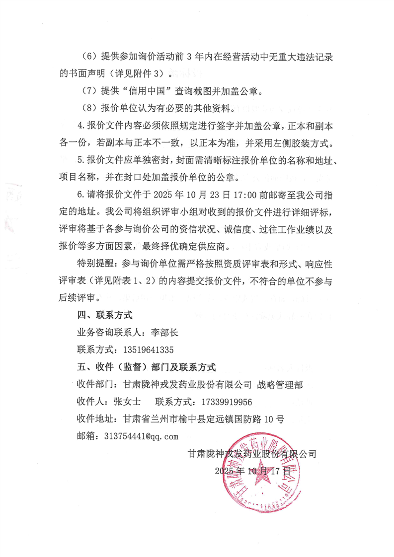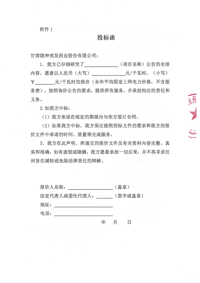 甘肃陇神戎发药业股份有限公司2026年度售电公司市场化电力交易询价公告