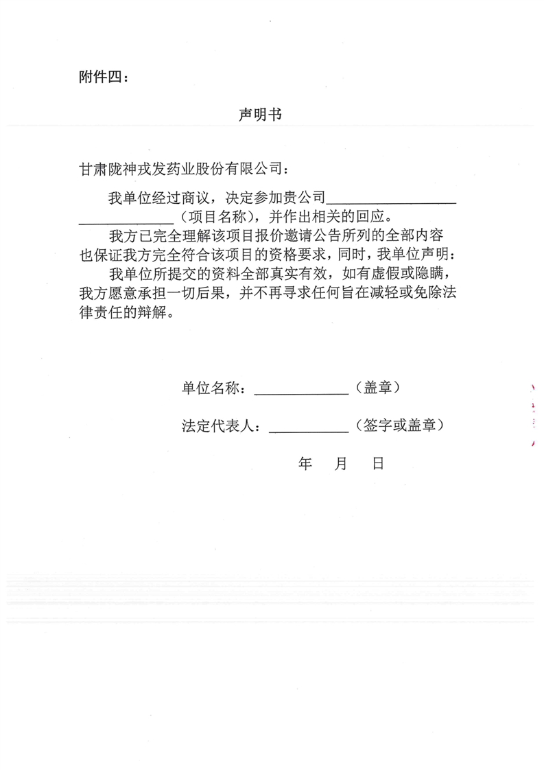 甘肃陇神戎发药业股份有限公司乙醇蒸汽冷凝罐询比采购公告