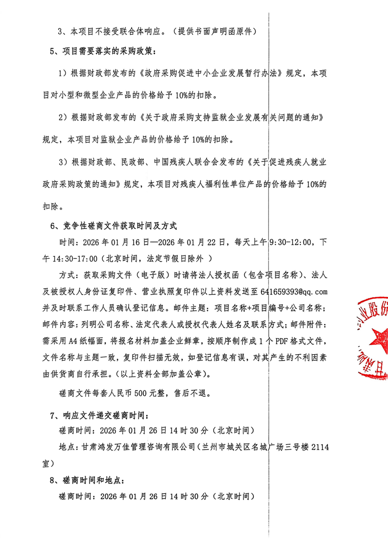 甘肃陇神戎发药业股份有限公司2026年度聚乙二醇6000采购项目(二次)竞争性磋商公告