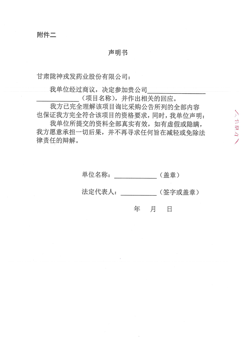 甘肃陇神戎发药业股份有限公司污水在线监测系统维保服务询比采购公告