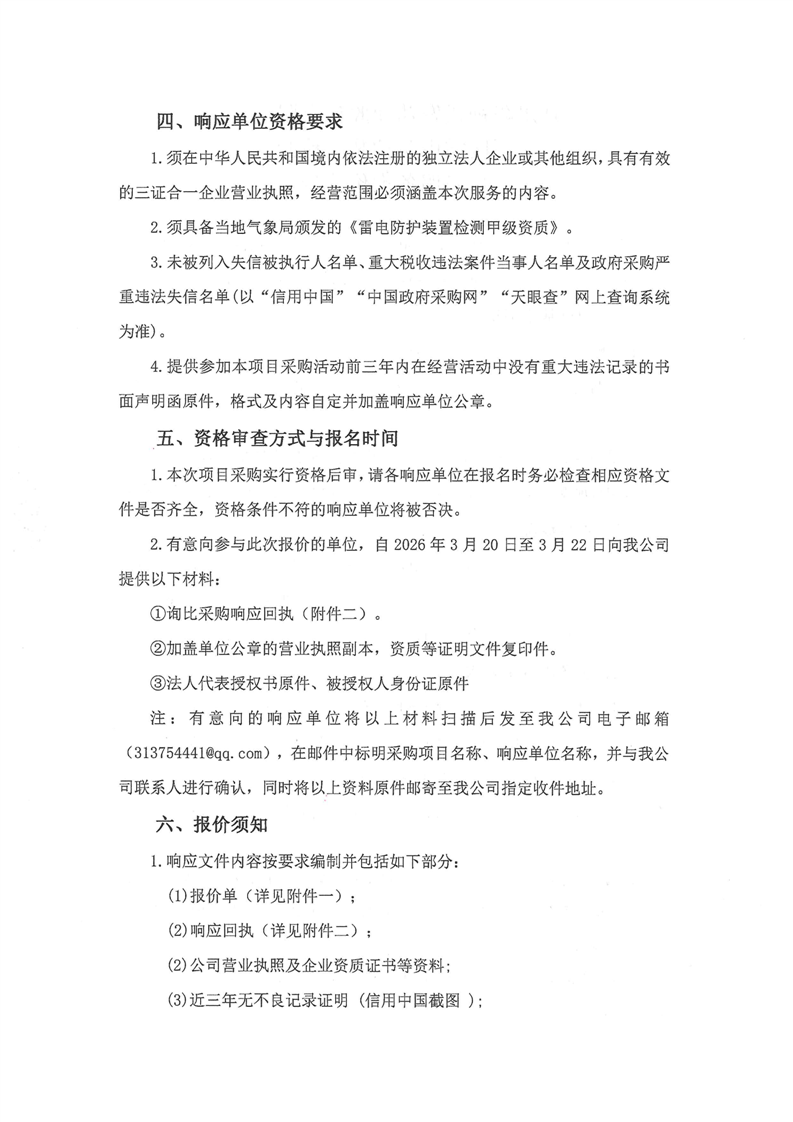 甘肃陇神戎发药业股份有限公司厂区雷电防护装置检测技术服务询价公告