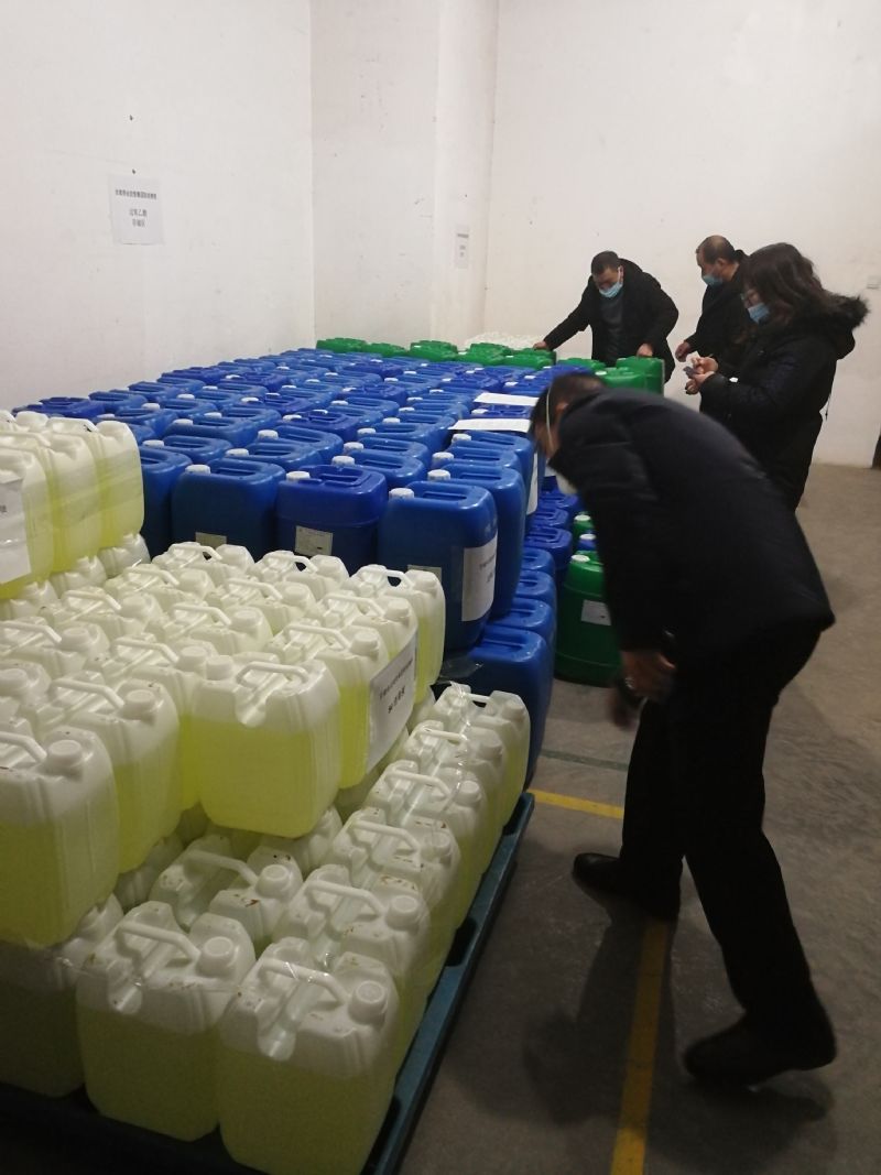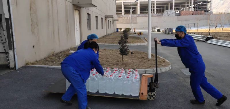 陇神戎发生产一线员工紧急配制75%酒精,用于疫情防控