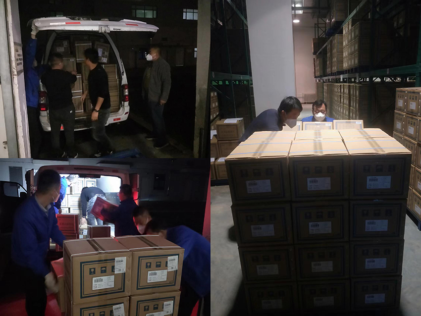 深夜一两点,仓库灯火通明,一堆堆待发的货品整齐有序的摆放,为保证订单如期交付,工程部及相关部门协调互助、通力合作,他们与时间赛跑,排除万难,连夜加班将货物发送至物流园。