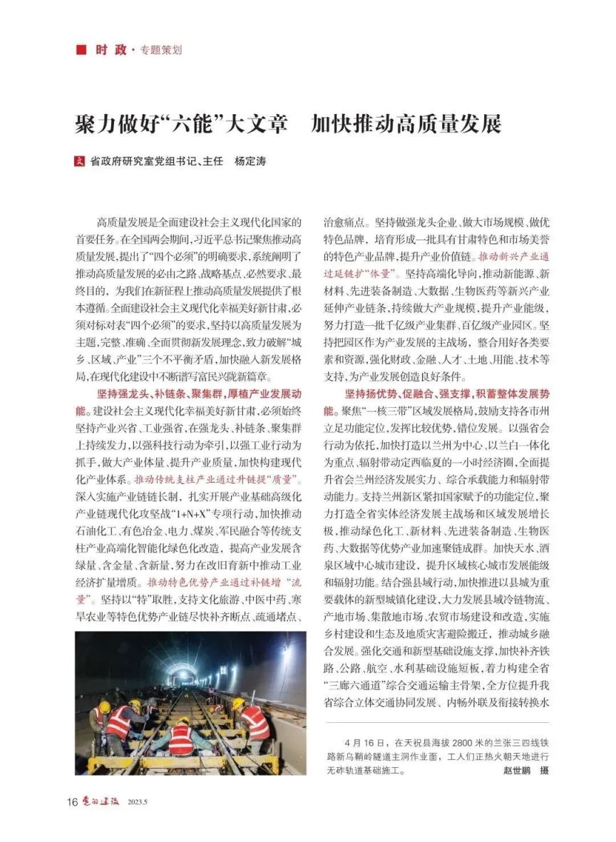 专题策划 · 锚定高质量 跑出甘肃“加速度” | 杨定涛:聚力做好“六能”大文章 加快推动高质量发展