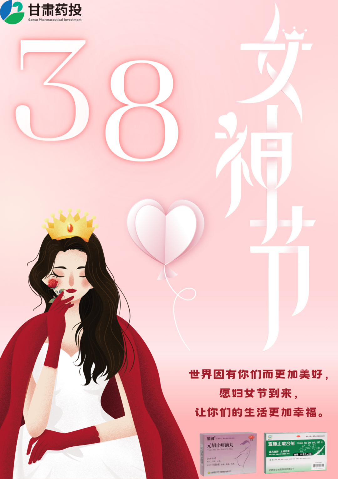 甘肃药业投资集团有限公司在这个最美的节日里,温暖进社区,携宣元好药,一同守护女性的健康,你们是世界的半边天,世界因有你们而变得更加美好,妇女节到来之际,祝您事业蒸蒸日上,生活幸福美满。