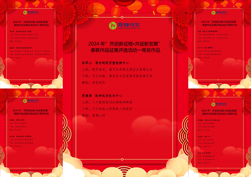 此次春联征集以“颂陇神发展、贺农历新春”为主线,围绕陇神戎发发展,以赞颂陇神戎发改革发展大好形势、对比过去与现在改革与发展的巨大变化、倡导广大员工激情创新团结奋斗的良好风尚、赞扬对陇神戎发发展做出突出贡献的骨干人物或劳动模范等为主题。活动开展以来得到了公司本部以及各所属企业的高度关注和参与,共收到优秀创作作品28副。最终,活动共评选出一等奖2名,二等奖2名,三等奖7名。