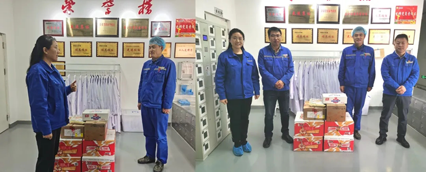4月3日上午,陇神戎发党委委员杨俊萍、总经理助理孙波代表公司党委来到生产车间对将在清明节期坚守岗位的生产车间一线人员表示慰问,向他们送去公司的关怀和温暖。