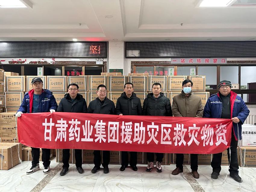临夏州积石山县6.2级地震发生后,甘肃药业集团闻讯而动,按照就近原则,迅速组织临夏药业公司向灾区保障供应抗震救灾急需药品,截至12月19日上午12时,6辆保供车辆已将首批价值近110万元救治药品运抵灾区一线,并及时发放到群众手中,有效保障了积石山县大河家镇等五个乡镇近15万受灾群众用药。