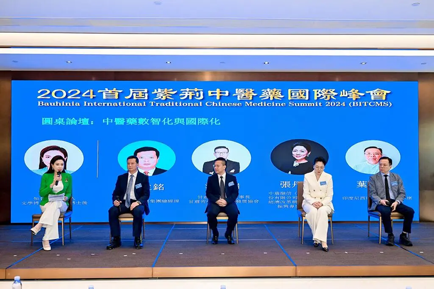 在主题圆桌论坛环节,甘肃药业投资集团总经理窦生铭,甘肃华陇和创董事长、甘肃省中医药产业发展协会创始人潘国瑞,中农融信(北京)科技股份有限公司董事长、中国经济改革研究基金会乡村振兴专委会秘书长张丹丹,印度尼西亚盛康中医院主席叶富豪等围绕“中医药数智化与国际化”进行讨论。