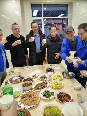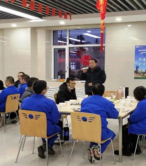 2023年1月21日晚,正值除夕之夜,公司党委书记、董事长宋敏平及部分领导班子成员在职工食堂,与坚守在岗位的人员共进年夜饭、共叙浓浓情,共同迎接新春佳节的到来。董事长宋敏平首先代表公司领导班子向春节期间仍然坚守在岗位的一线人员致以节日的问候,并送上春节美好的祝福和新一年的展望;总经理康永红感谢大家一年来辛苦的付出和努力。天气很冷,话语很暖;暖意浓浓,荡漾心间。宴席间,大家有说有笑、畅所欲言、相互祝福、同品佳肴,欢乐和喜悦洋溢在所有人的脸上。
