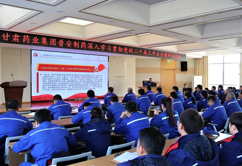 近期,甘肃药业集团采取现场授课、视频讲座、互动交流、“三会一课”等多种形式,对集团公司中层及以下党员干部全覆盖、无盲区、分阶段组织开展学习贯彻党的二十届三中全会精神轮训,迅速掀起了学习宣传、贯彻落实党的二十届三中全会的热潮。参训人员达到300余人次。
