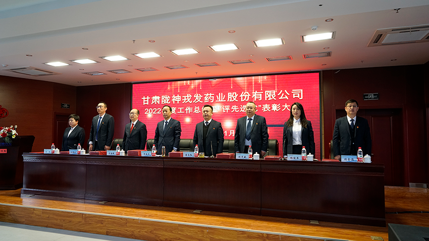 1月18日下午,陇神戎发2022年度工作总结暨评先选优表彰大会在公司八楼会议厅隆重举行。公司领导班子、各部门及神康公司、新丝路公司、三元医药干部职工参加会议。会议在庄严的国歌声中拉开序幕。