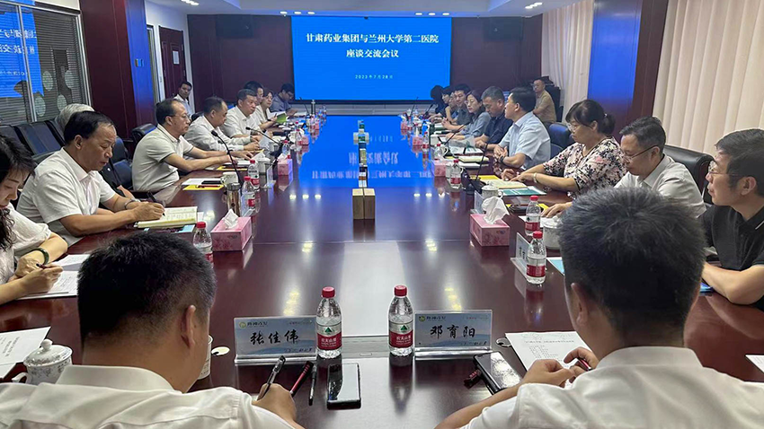 7月28日上午,兰州大学第二医院院长周文策一行莅临陇神戎发参观并进行座谈交流。甘肃药业集团公司党委书记、董事长周荣,党委副书记、总经理窦生铭,党委委员、副总经理张世俊、康海军、胡宁,财务总监王丽华等企业相关人员参加调研并座谈。