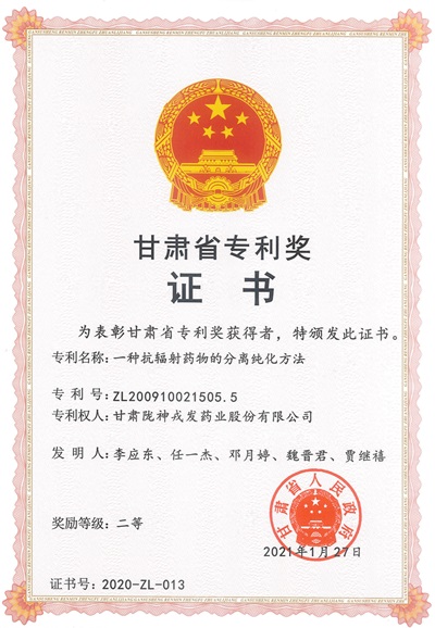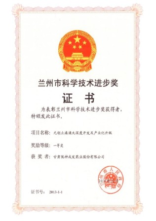 获国家重点新产品、中国专利优秀奖、甘肃省专利奖、甘肃省科技进步奖等省级以上科技奖励共13项。