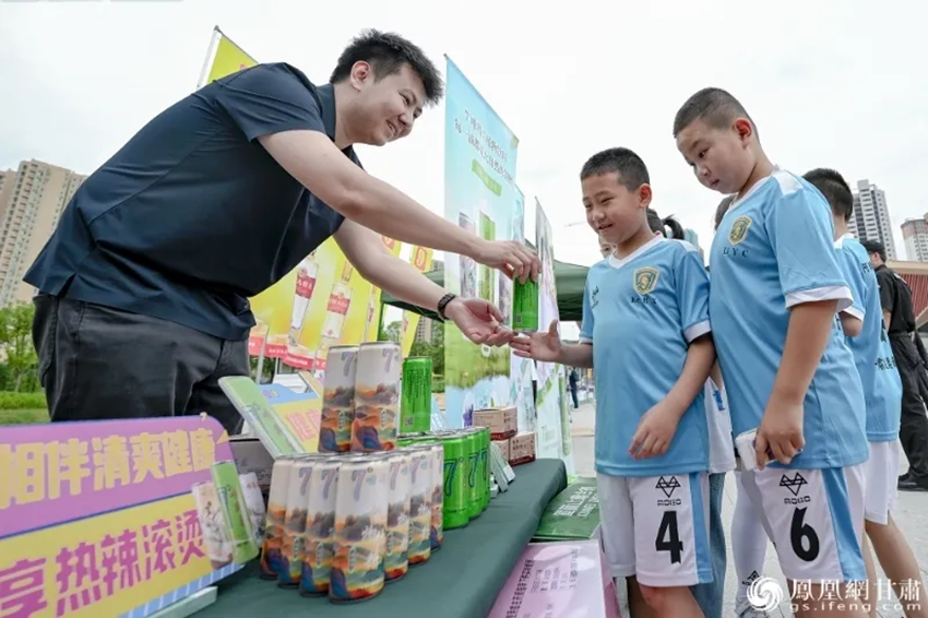 甘肃药业集团展区的纯植物功能饮品吸引小球迷品尝