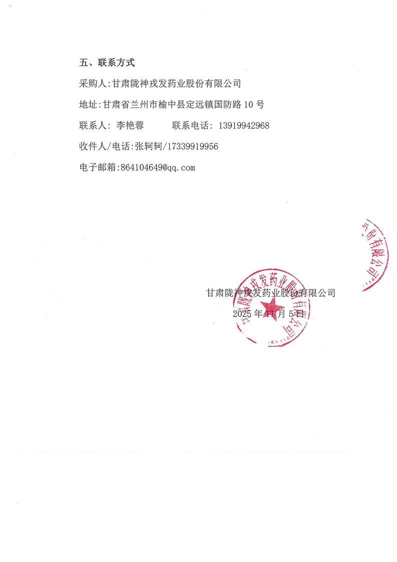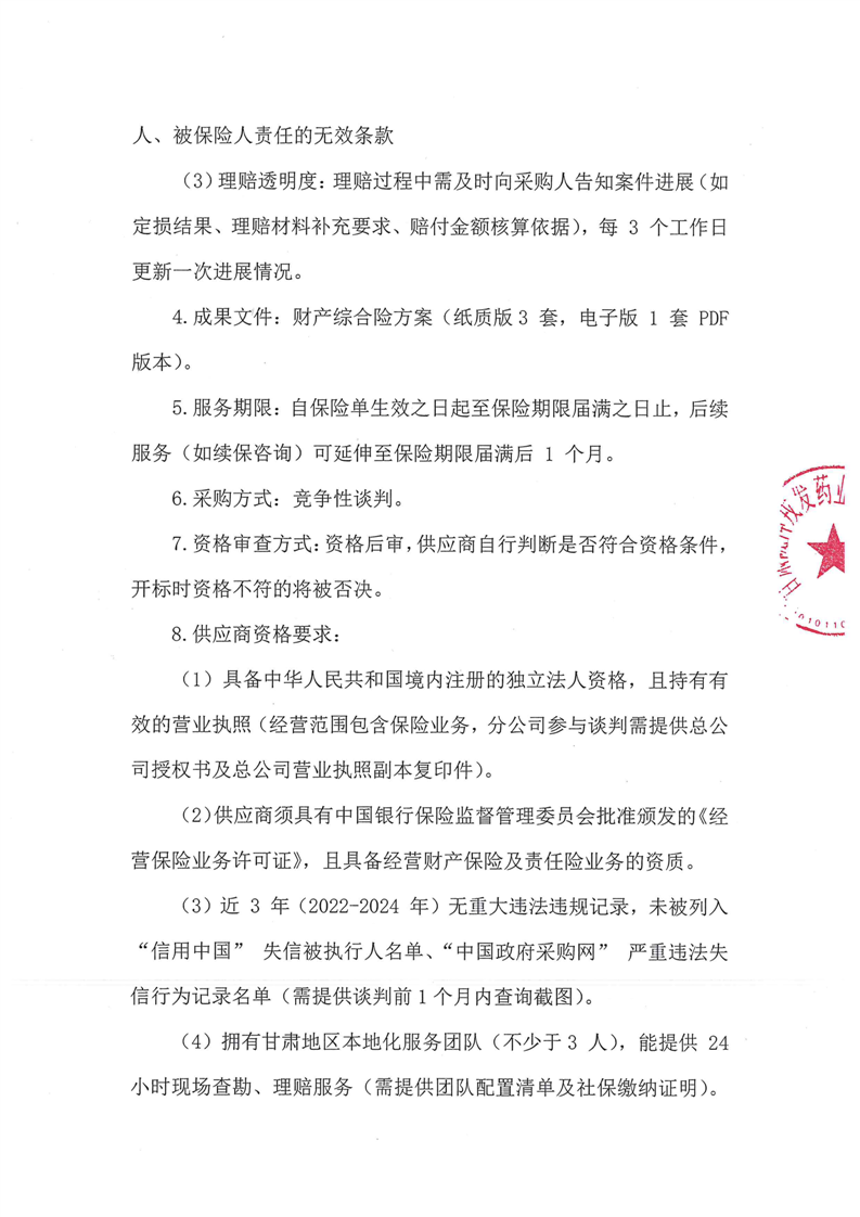 甘肃陇神戎发药业股份有限公司2025-2026年度财产综合险采购项目公告