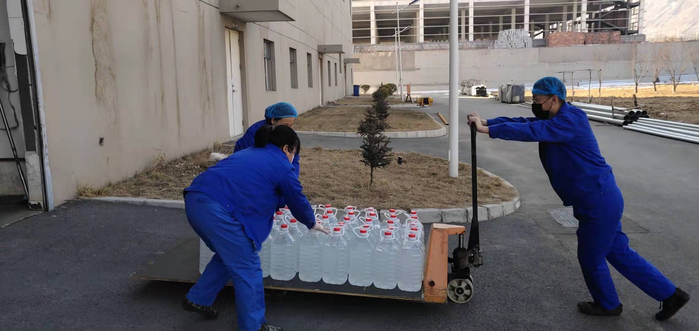 陇神戎发生产一线员工紧急配制75%酒精,用于疫情防控