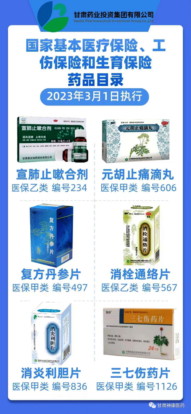 甘肃药业:国家基本医疗保险、工伤保险和生育保险药品目录