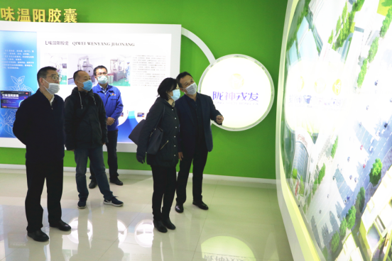 孔斌一行先后参观了公司产品展厅、生产车间、生产监控室,对公司发展历程、企业改制上市工作、重点产品、生产过程、核心产品、技术研发等情况进行了详细了解。陇神戎发党委书记、总经理康永红介绍了公司主打产品元胡止痛滴丸等4个独家品种和其它普药品种,陇神戎发党委委员、副总经理钱双喜介绍了陇神戎发制剂滴丸生产线及包装联动线。
