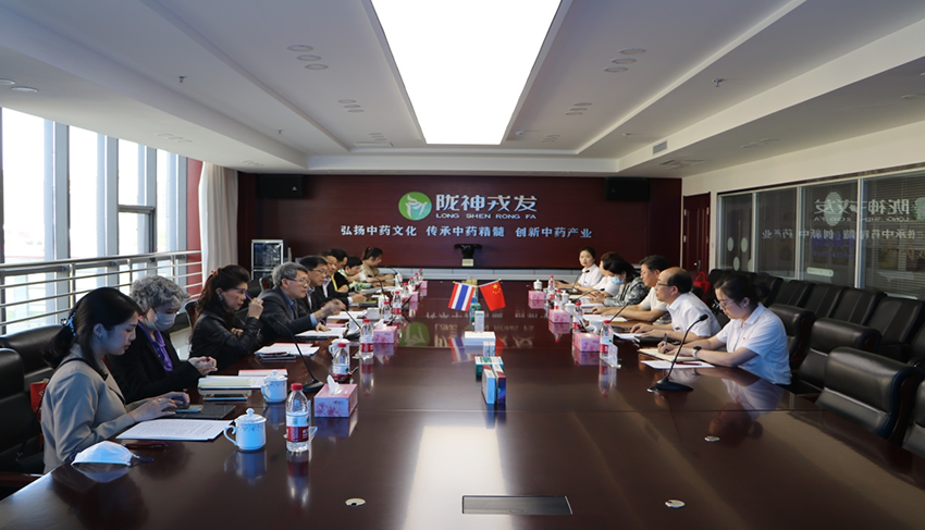 8月21日下午,泰国卫生部传统和替代医学司司长王通财一行到访甘肃陇神戎发药业股份有限公司参观考察。