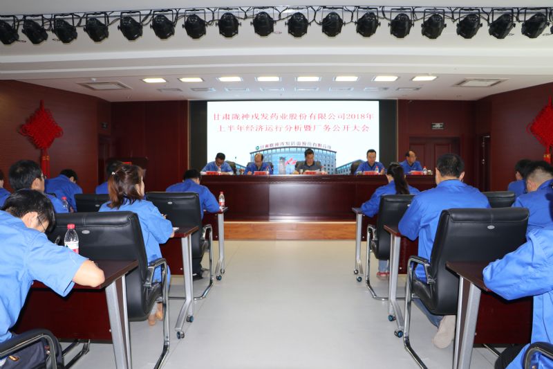 6月14日上午,陇神戎发召开2018年上半年经济运行分析会暨厂务公开大会,总结分析上半年经济运行情况,查找存在的问题及不足,重点部署下半年工作。公司董事长康海军,总经理康永红及班子成员,中层以上干部、班组长以上人员共计100余人参加了会议。会议由总经理康永红主持。