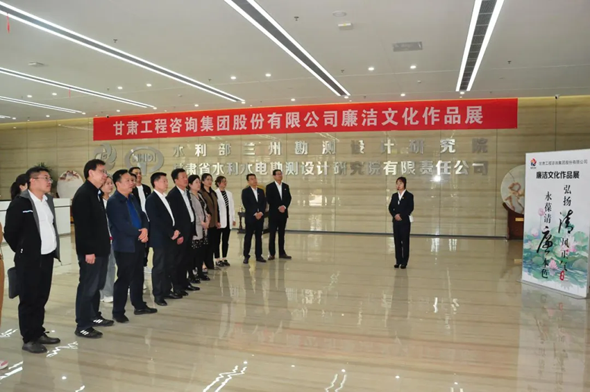 参观过程中,同志们驻足聆听工作人员的讲解,细看凝思,就作品展现的倡廉主题进行探讨交流,深入品味一幅幅书法、绘画、摄影、设计、视频类作品,从中汲取廉洁文化营养,通过艺术的感染和文化的浸润,让清正廉洁、守纪律、讲规矩的廉洁理念深入人心。大家感到,甘肃工程咨询集团廉洁文化展主题突出、内容丰富,形式多样、职工参与度高,作品涵盖了反腐倡廉、红色传承、党性教育等内容,突出“清”和“廉”的主题,把政治建设、思想建设、组织建设、作风建设、纪律建设与反腐败斗争及制度建设等内容有机结合充分融入,使展览成了警醒干部、弘扬正气、警钟长鸣的廉洁文化大餐。