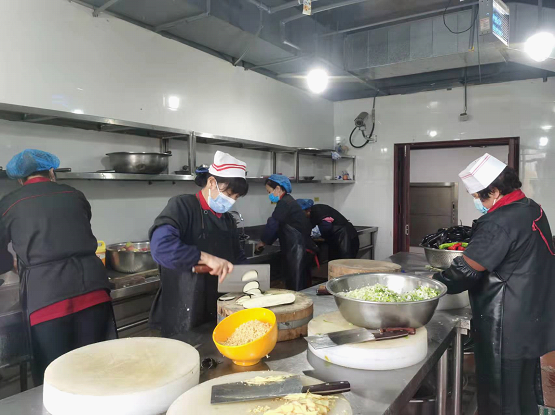 赞许的背后,总有人在默默付出。郑明芳就是其中一位,她是后勤服务部食堂班退休返聘人员。50多岁的她是出了名的干练,她力量比一般的小伙子还大,一直是食堂班的中坚力量。10月19日,得知公司需要为驻厂突击队员提供后勤保障时,郑明芳主动请缨,和搭档王春花驻厂做好食堂供餐保障工作。疫情期间,后勤服务部克服种种困难,让大家吃上一盒盒香气四溢饭菜,再配上公司工会采购的防疫方剂熬制出的“岐黄避瘟汤”。让忙碌在工作岗位上的员工各个精神饱满,热情高涨。
