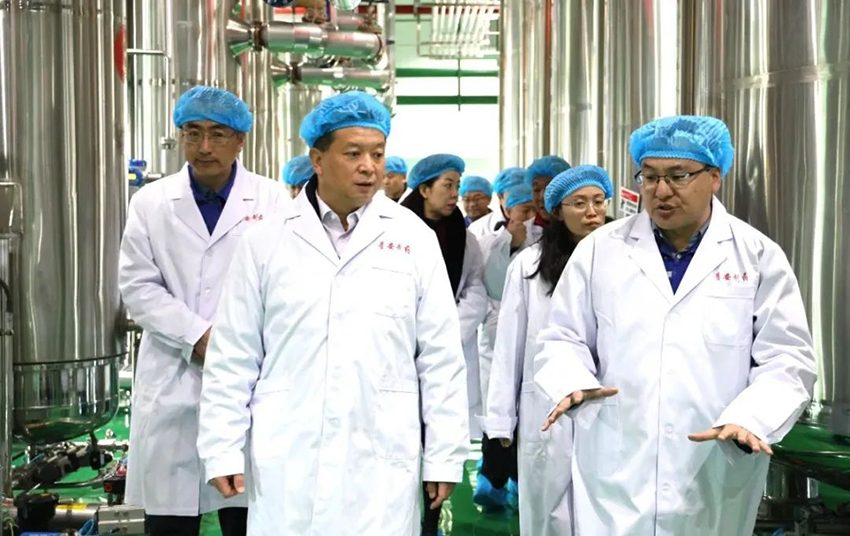 窦生铭一行先到公司年产5000万盒宣肺止嗽合剂生产车间现场调研指导安全生产、质量管理、信息化建设以及基层党建等工作,强调要全面加强党的建设,充分发挥党委把方向、管大局、保落实的作用,进一步挖掘党建融入生产经营“金点子”,持续推动安全管理、生产经营、科技创新等工作高质量发展。与生产一线职工进行亲切交谈,对他们艰苦奋斗的工作精神表示高度赞扬,鼓励他们立足岗位、艰苦奋斗、再接再厉,争创更好的业绩。