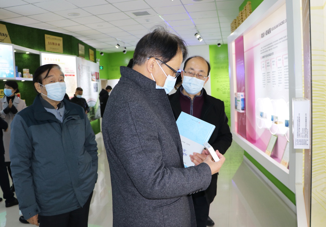 在陇神戎发制剂大楼,公司董事、副总经理兼董事会秘书元勤辉向朱梓阳总裁一行介绍了陇神戎发的产业结构、生产规模、职工队伍等基本情况,并重点围绕公司创建设立、股份制改造、增资扩股、深交所创业板上市、直至并入甘肃药业集团等重大事件,详细介绍了公司的改革发展历程。随后,在元勤辉副总的陪同下,朱梓阳总裁一行饶有兴致地参观了公司产品陈列室,并就元胡止痛滴丸、七味温阳胶囊及鞣酸小檗碱膜等产品的优势特点和市场应用情况,以及麻杏止咳胶囊和宣肺止嗽合剂两个止咳类产品的差异化特点与现场陪同人员进行了交流。