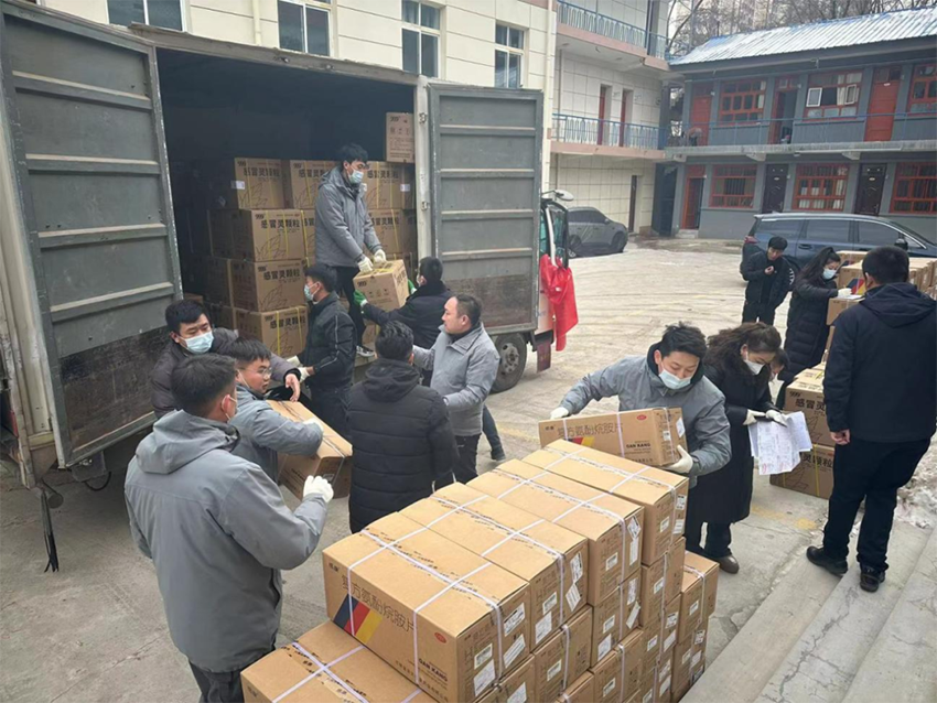 临夏州积石山县6.2级地震发生后,甘肃药业集团闻讯而动,按照就近原则,迅速组织临夏药业公司向灾区保障供应抗震救灾急需药品,截至12月19日上午12时,6辆保供车辆已将首批价值近110万元救治药品运抵灾区一线,并及时发放到群众手中,有效保障了积石山县大河家镇等五个乡镇近15万受灾群众用药。