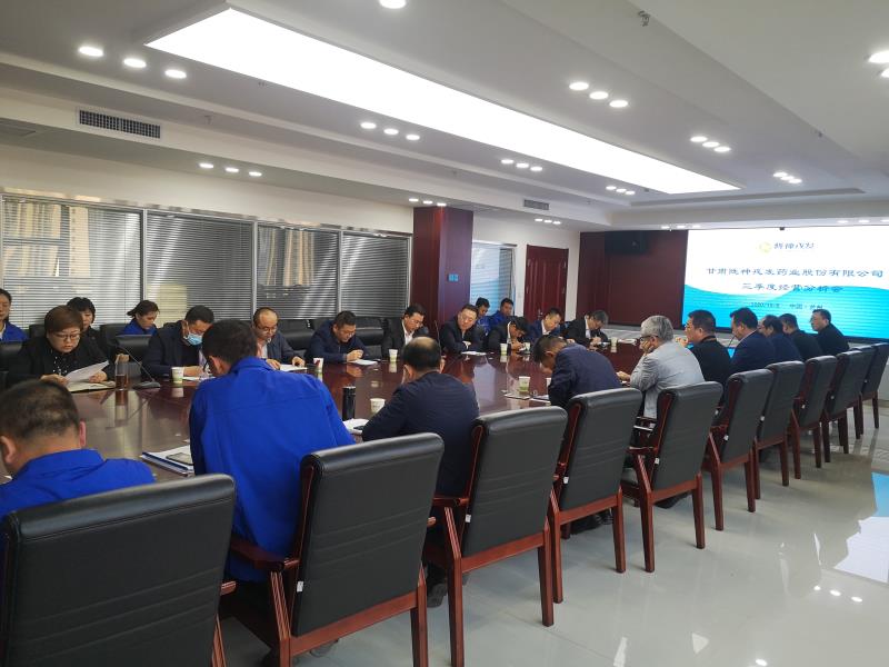 10月8日下午,陇神戎发召开第三季度经营工作分析会,甘肃药业集团党委委员、副总经理胡宁、运营管理部部长李建军莅临会议。甘肃药业集团党委委员、副总经理兼陇神戎发董事长康海军,陇神戎发领导班子成员、各子公司负责人、营销中心各区域经理及相关部门负责人参加了会议。