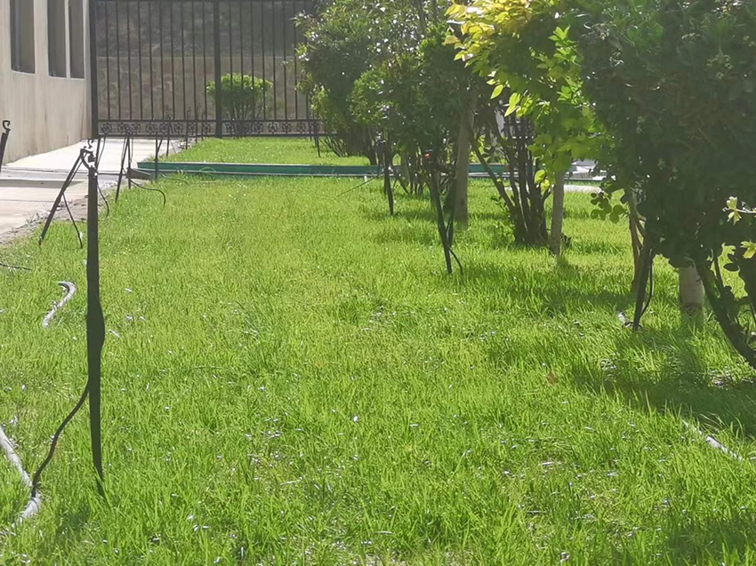 这半年来,公司组织人员,先对地面进行了一次次清理,捡拾掉杂草和较大的石块,换掉板结的旧土,填上疏松肥沃的新土,再用水灌溉至浇透。等到土壤微干松散,用铁锹对土地做了一次深翻,使土地软化并平地,均匀的撒上种子后,用耙子抹平,最后还要覆盖上膜,布置好浇灌系统。整个工作流程说起来简单,但都实实在在地倾注了每一位工作人员的心血和汗水。