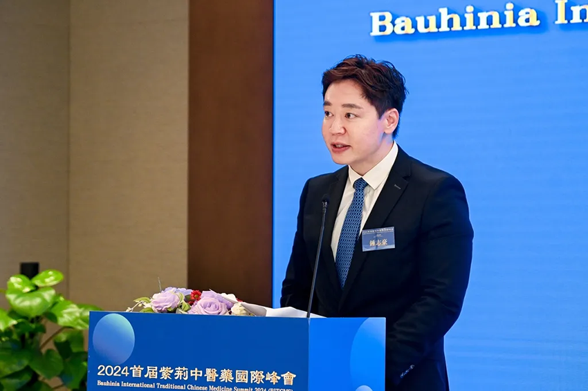 香港医务卫生局中医药发展专员钟志豪致辞时表示,中医药作为传统医学的重要一员,其历史源远流长,其理论扎根于中华文化,其临床疗效亦渐渐以循证医学的方法获得验证。他提出,充份利用香港在国际贸易及中药研发等方面优势,探索在质量提升、便利营商,国际推广方面,发挥香港增值赋能的长处,协助香港及内地中药产品开拓海外市场。同时,参考世界各地不同的规管制度,积极参与中药材国际标准制定工作。此外,在文化传播方面探索独特的中医药文化体验旅游,多管齐下地向国际社会推广中医中药。