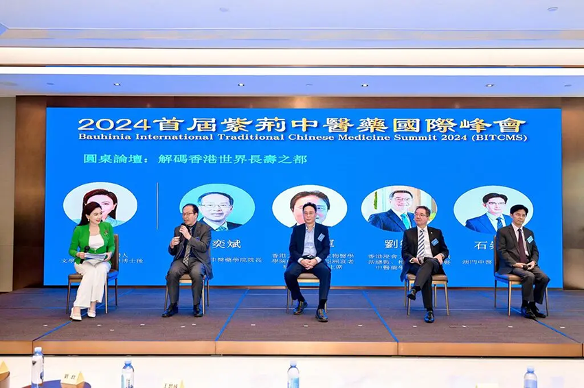 其后,香港大学中医药学院院长冯奕斌,香港大学医学院生物医学学院终身教授、亚洲衰老研究学会创会主席周中军,香港浸会大学暂任首席创新总监、校长资深顾问暨中医药学院荣誉教授刘乐庭,澳门中医药学会会长石崇荣围绕“解码香港世界长寿之都”主题展开探讨。
