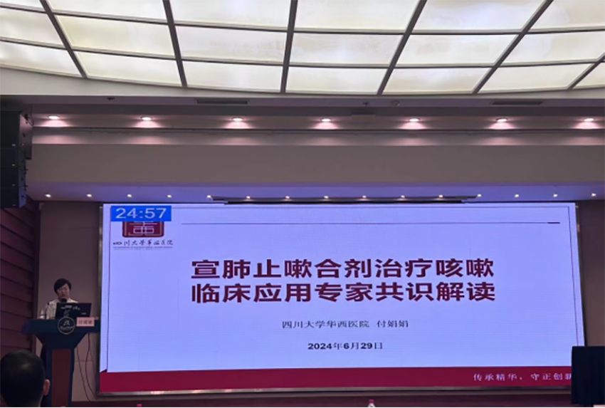 四川省中医药学会肺系病专业委员会副主任委员、四川大学华西医院付娟娟教授介绍,宣肺止嗽合剂源自《医学心悟》中经典名方“止嗽散”,历经数百年的验证,由多位名老中医在原方基础上加减化裁而成。付娟娟对《宣肺止嗽合剂治疗咳嗽临床应用专家共识》进行了专题解读,从宣肺止嗽合剂的安全性、有效性以及依赖性研究等方面进行系统诠释,肯定了宣肺止嗽合剂治疗效果。