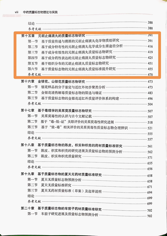 近日,由中国工程院院士刘昌孝、天津药物研究院张铁军教授主编的《中药质量标志物理论与实践》专著正式出版发行。该专著从质量标志物的提出背景、定义、核心理论、研究方法以及示范性研究等方面进行系统论述,对于中药质量标志物的发展具有里程碑意义。其中,甘肃陇神戎发药业独家产品元胡止痛滴丸作为中药大品种,基于其药理功效的质量标志物研究在此专著中得到深入论述。