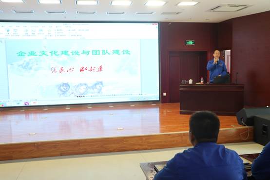 公司党委委员、综合管理部兼党群工作部部长杨俊萍授课