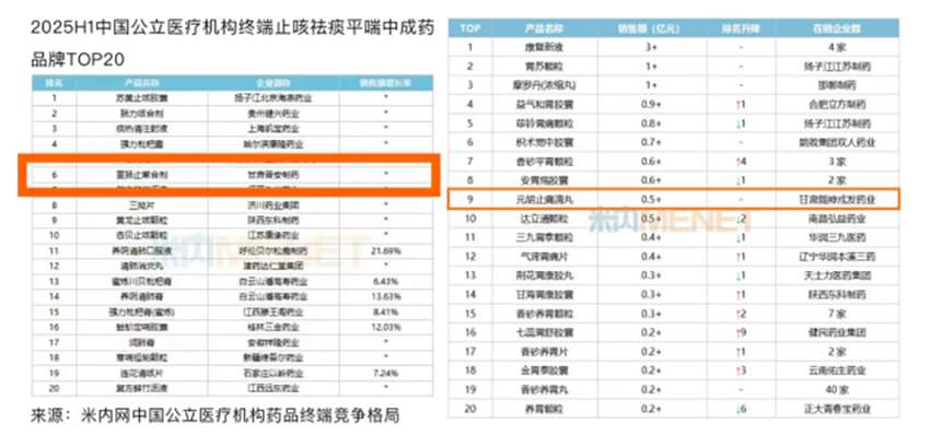市场认可度的持续提升成为企业发展的有力佐证。2024年公司成功入选“2023年度中国中药企业TOP100排行榜”,位列第71位,跻身全国中药企业第一梯队;核心产品宣肺止嗽合剂凭借过硬品质与市场表现,荣登“2024中国创新药销售企业排行榜(中药)TOP20”第7位,同时跻身多项终端市场TOP20榜单;另一核心产品元胡止痛滴丸也在公立医疗机构终端中成药丸剂、胃药等细分领域稳居前列。截至2025年,核心产品累计覆盖等级医院主打产品元胡止痛滴丸和宣肺止嗽合剂等级医院覆盖分别达到2800余家、2000余家,两大核心产品的市场占有率和核心竞争力稳步提升,成为“陇药”走向全国的标杆产品。