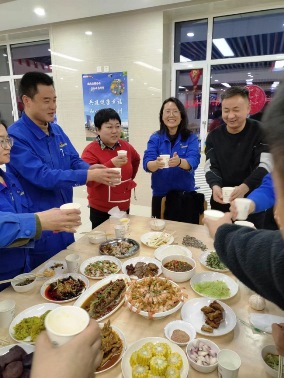 2023年1月21日晚,正值除夕之夜,公司党委书记、董事长宋敏平及部分领导班子成员在职工食堂,与坚守在岗位的人员共进年夜饭、共叙浓浓情,共同迎接新春佳节的到来。董事长宋敏平首先代表公司领导班子向春节期间仍然坚守在岗位的一线人员致以节日的问候,并送上春节美好的祝福和新一年的展望;总经理康永红感谢大家一年来辛苦的付出和努力。天气很冷,话语很暖;暖意浓浓,荡漾心间。宴席间,大家有说有笑、畅所欲言、相互祝福、同品佳肴,欢乐和喜悦洋溢在所有人的脸上。