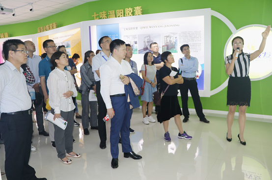 在产品展厅,杨俊萍介绍了公司主打产品元胡止痛滴丸及斯娜格药膜、酸枣仁油滴丸、七味温阳胶囊等4个独家品种和其它产品并结合陇神戎发“年产200亿粒现代中药生产线扩能改造项目”规划图,对已建成投入使用的七大单体楼宇逐一介绍。