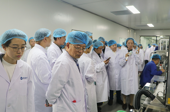 在制剂车间,参会代表一行了解了元胡止痛滴丸滴制、晾丸等的生产工艺流程,在外包装联动线前观看了元胡止痛滴丸内包及外包装生产全过程,杨俊萍介绍了陇神戎发在药品品质把控及可追溯监管方面开展的工作。