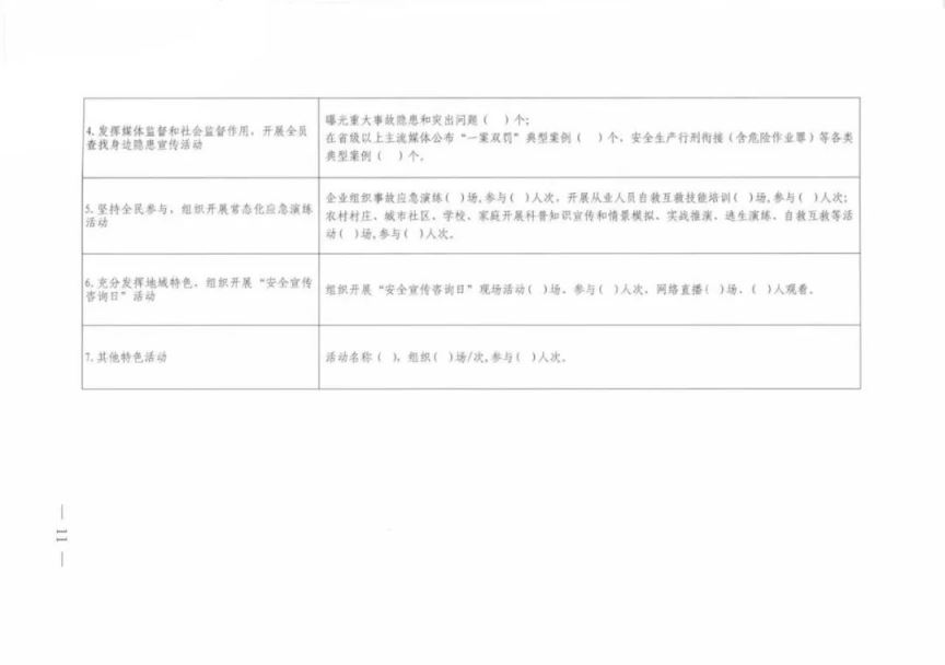 (三)确保活动实效。要把活动与解决当前安全发展中的热点难点问题相结合,与安全生产专项整治等重点工作相结合,与推动落实各方面安全生产责任相结合;创新工作举措,因地制宜开展好宣传活动,推动防范化解重大风险,促进安全生产水平提升,切实增强人民群众的获得感、幸福感、安全感。