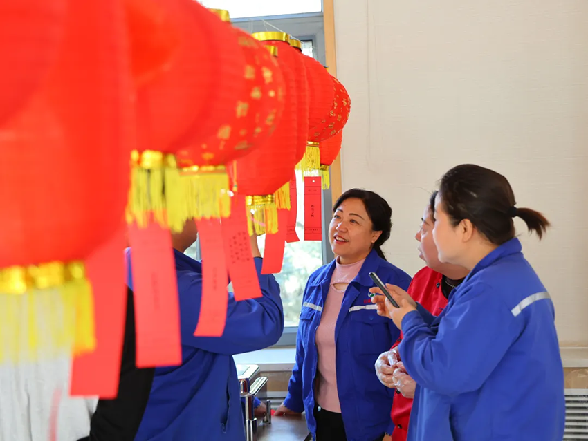 活动现场张灯结彩,处处洋溢着浓厚的节日气息。280条涵盖传统文化、党建知识、企业文化、安全常识的谜语卡高悬其间,吸引了众多职工驻足参与。大家或独自思索,或三五成群讨论,不时传来阵阵欢笑声。大家踊跃竞猜,积极兑奖,在轻松愉悦的氛围中收获了节日的喜悦。