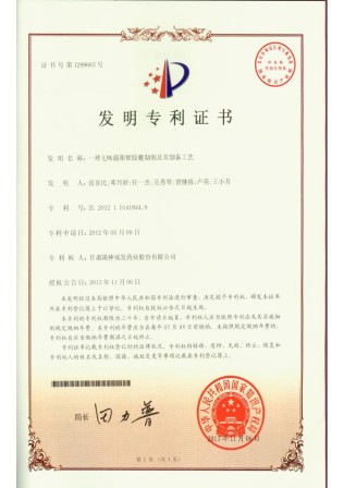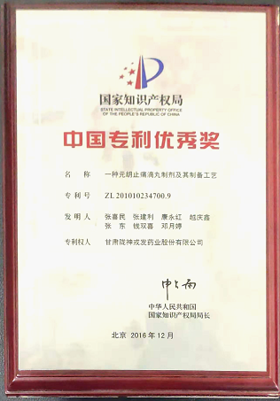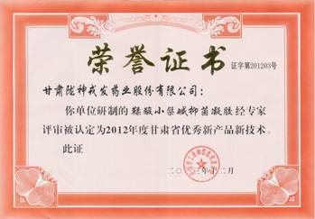获国家重点新产品、中国专利优秀奖、甘肃省专利奖、甘肃省科技进步奖等省级以上科技奖励共13项。