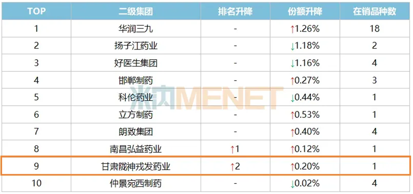 同时,在2025年Q1中成药胃药(胃炎、溃疡)二级集团中,甘肃陇神戎发药业排名上升2位至TOP9、销售额增长了8.95%。