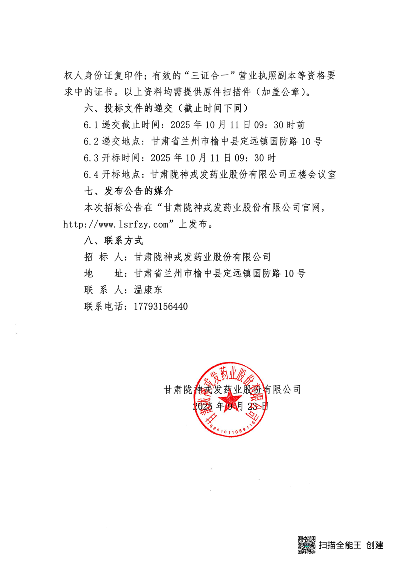 甘肃陇神戎发药业股份有限公司基层医药物流配送体系建设项目(智能化升级改造)监理竞争性磋商公告
